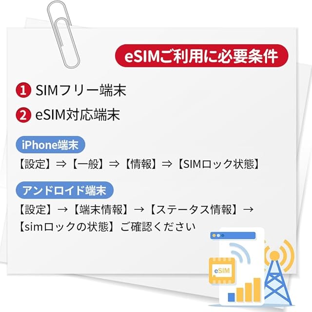 【特徴】①eSIM情報の受け取り後、30日間有効です。 ②使用前に、スマートフォンのSIMカードが解除されており、eSIMに対応していることを確認してください。