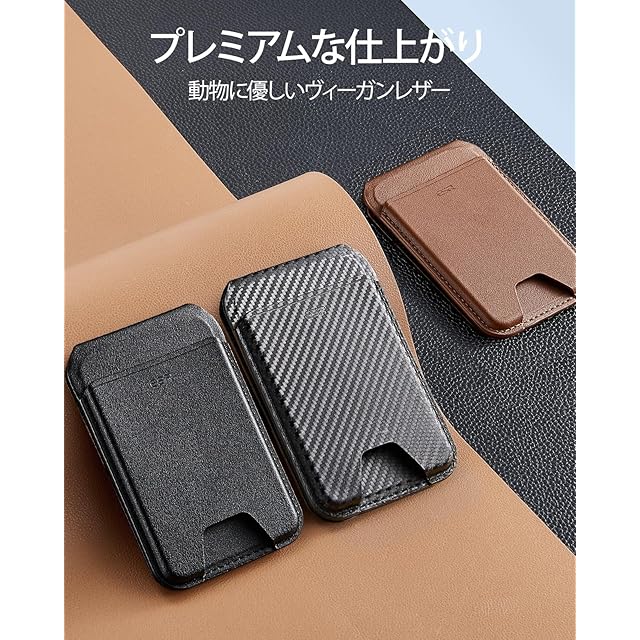 商品名:[ESR] 2025新登場収納量アップ MagSafe カードケース 5枚カード RFIDブロッキング機能 角度調節可能スタンド付き iPhone用マグセーフ カードケース スリム iPhone 16/15/14/13/12シリーズ用 Mini非対応 ベジタンレザー カーボンファイバーブラック