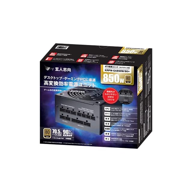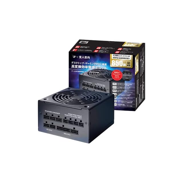 商品名:玄人志向 電源ユニット 850W ATX 電源 80 PLUS ゴールド PC電源 フルプラグイン セミファンレス KRPW-GA850W/90+