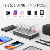 8-IN-1チャージングドック:UnitekのマルチUSB充電ステーションには、6つのUSB-Aポートが付いており、BC1.2/Apple 2.4Aをサポートしています。各ポートは最大5V/2.4Aの出力を提供します。この充電ステーションは、タブレットとスマートフォンの完全な電力を供給できます。