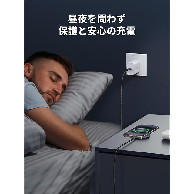 【軽量・薄型、高耐久編み込み式ケーブル】:この軽薄で持ち運びに便利なワイヤレス充電器は、いつでもどこでも充電できる便利な商品です。コンパクトなサイズでバッグやポケットにも簡単に収納でき、1.5Mの耐久性抜群な編み込みケーブルは自由に曲げても破損する心配がありません。旅行や外出先でも手軽に充電が可能で、iPhoneやAirPodsを常に満充電の状態に保つことができます。