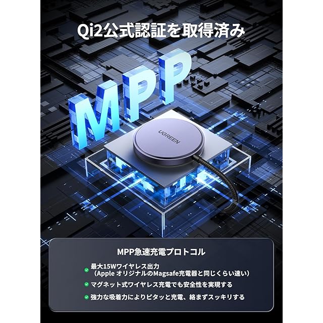 UGREEN MagFlow Qi2 15W MagSafe充電器 マグセーフ マグネット式 超薄コンパクトクレードル・ドック ワイヤレス充電器 超強力磁気 置くだけ充電 iPhone16/iPhone 16pro/iPhone 16pro max /15/14/13/12 AirPods Pro/3/2/1対応 | TREND DESIGN 家電専門店