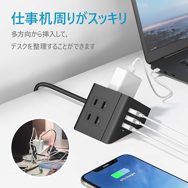 ✔【安定性ある三角形構造】延長コードのUSBとACタップは各方向に分配して、コンセント同士の干渉を防ぎ、すっきりとした配線を実現できます。タップの底面に滑り止め用のゴムがより安定を提供します。テーブルタップのAC口の出力は最大1500Wで、家庭、オフィス、会議室、パーティーなどにも大活用できます。