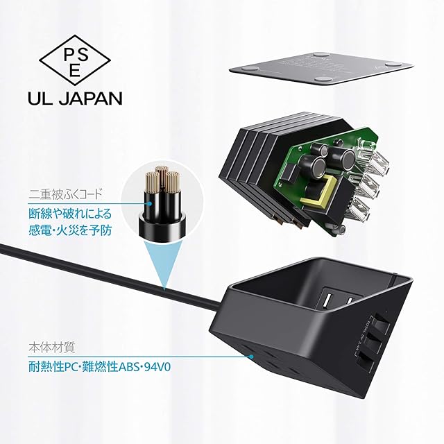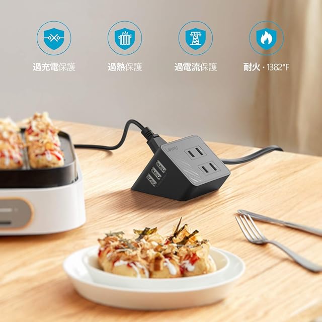 ✔【多重安全保護】この電源タップ usbは通電ランプを内蔵しているので消し忘れを防止できます。過熱、過電流、過負荷、過充電からお使いの家電を守り、安全で頼りになれるテーブルタップです。電源コードは耐熱性に優れた樹脂二重被ふくコードを採用していますので、長期間安心してお使いいただけます。