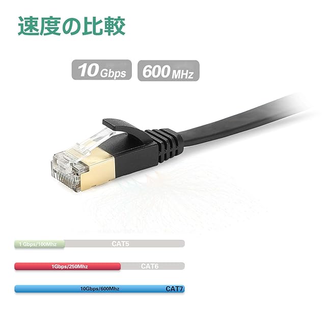 通信速度アップ:50M 有線lanケーブル カテゴリ7に準拠した高速LANケーブルで、次世代の10Gbps対応高速、600MHz((CAT5の6倍、CAT6の2.4倍)伝送帯域幅のイーサネット環境を実現します。 従来のケーブルより優れたシールド保護、広い伝送帯域幅、データエラー防止効果あり、 RJ45プラグ付きのすべてのネットワーク機器に接続できます