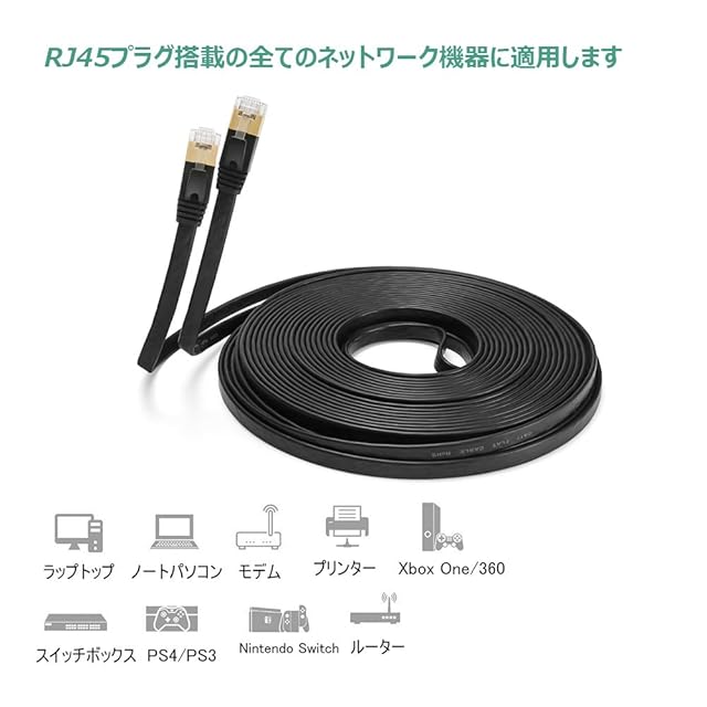 互換性:既存のCAT5、CAT5E、CAT6、Cat6a LANケーブルなどと互換性があります。両端はRJ45コネクタで特に設定なし、ルータ、スイッチ、ハブ、ネットワークプリンタ、PS2、PS3、PS4、RJ45プラグを搭載したゲームボックス等に適用します。