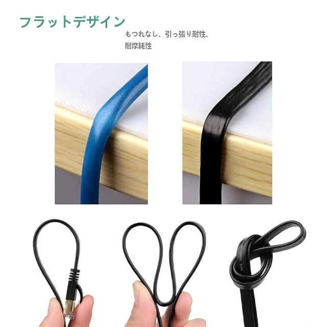 フラットデザインとフリークリップ:該当ケーブルは超薄型技術採用し、もつれたコードを避けてスペースを節約し、敷物やカーペットの下でケーブルを配線しても目立たない、インテリア装飾の美観性を損ねない。 非常に柔軟で、スリムながら頑丈で、壁に沿って並ぶのが簡単です。 ケーブルクリップが無料で同梱されます。