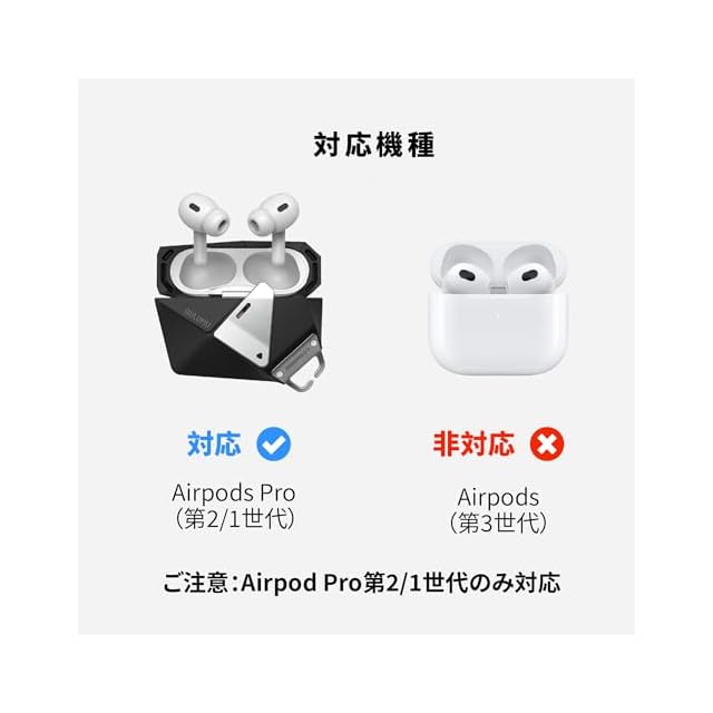 【ワイヤレス充電対応&互換性】AirPods Pro(第1/第2世代|Lightning/USB-C)に対応。ワイヤレス充電も可能ですが、一部機種ではケースの厚みにより反応しにくい場合があります。