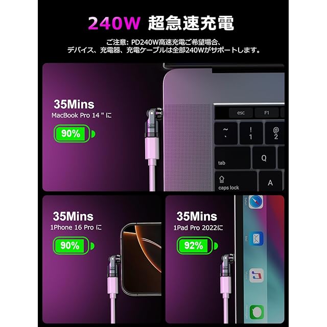 【ご注意】①この製品は充電ケーブルで専用です。②この製品はビデオ出力できません、データ転送がUSB2.0のみサポートします。③この製品はUSBハブ、HDMIなどの機種が接続できません。④この製品は9Pinのシリーズが専用です。⑤PD240W高速充電ご希望場合、デバイス、充電器、充電ケーブルは全部240Wがサポートします。