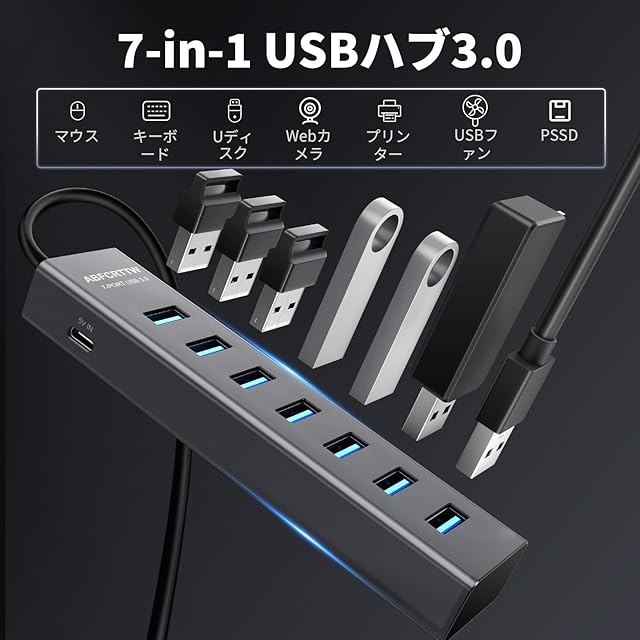 【7ポートアルミニウム製USBハブで快適な接続性を実現】 高品質なアルミニウム製の7ポートUSB 3.0ハブは、優れた放熱性と安定性を提供。キーボード、マウス、外付けドライブなど複数のデバイスを同時接続可能で、デスクトップ環境をスッキリ整理。PCユーザーに最適なUSBハブです。