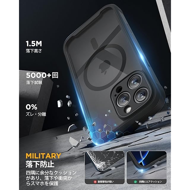 【強力な磁力吸着】2025アップグレード、iPhone16pro 用 Magsafe対応ケース。マグネットを搭載、超強力な吸着力でしっかり吸着します。利便性と実用性をアップさせ、ワイヤレス充電はもちろん、多様なマグネットアクセサリーとの素晴らしい組み合わせも実現できます。