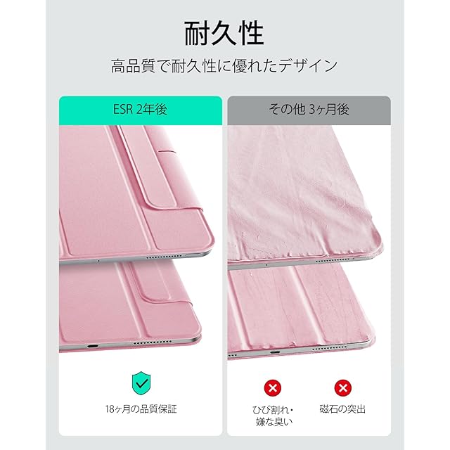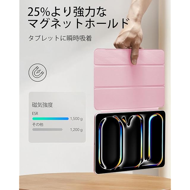 商品名:ESR iPad Pro 11インチ ケース M4 (2024、第5世代) 専用 強力マグネット吸着式 スリムな三つ折りスタンドケース Pencil Pro/USB-C完全対応 耐久性保護 Reboundシリーズ ピンク