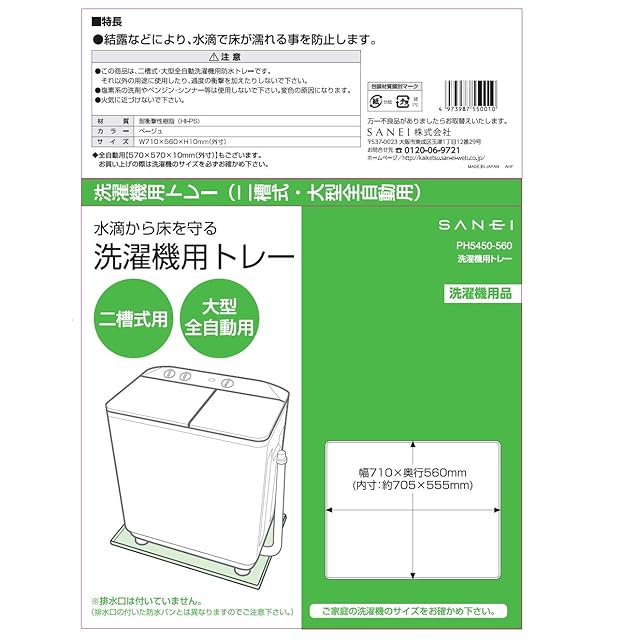 商品名:SANEI(サンエイ) 洗濯機用トレー 水滴や傷から床を守る 二槽式・大型全自動用 710×560mm PH5450-560