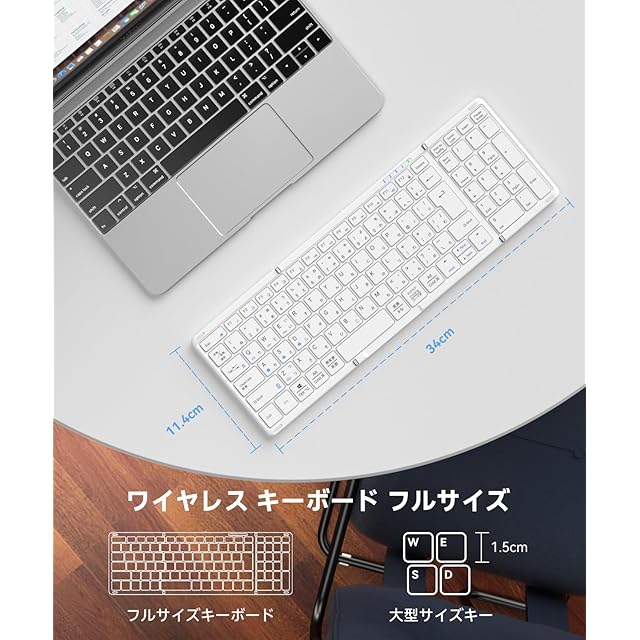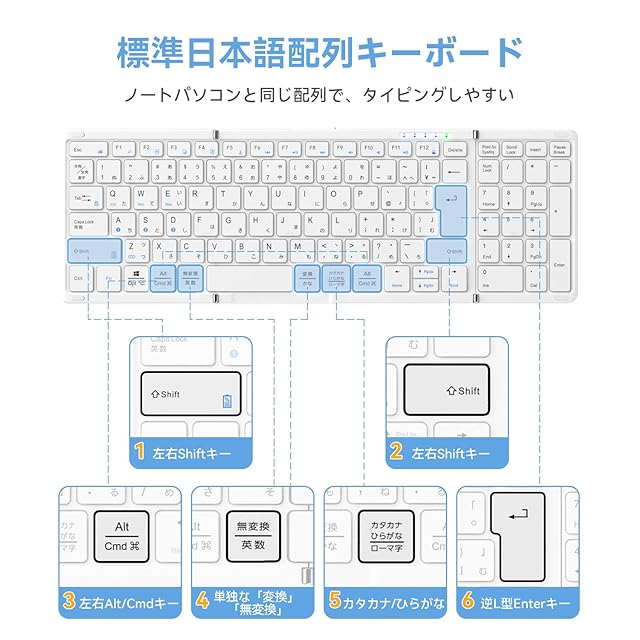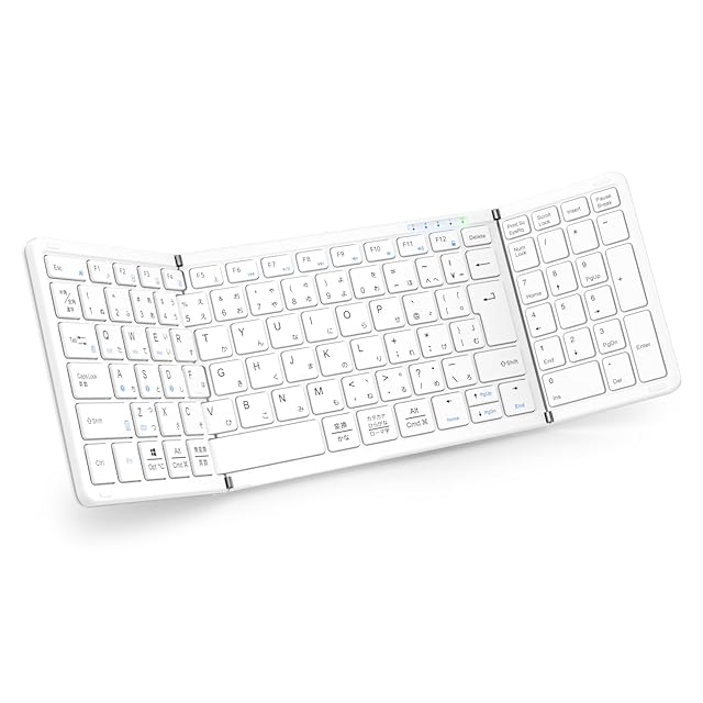 商品名:【最新型】Omikamo キーボード Bluetooth 折り畳み ワイヤレス テンキー付き L型Enterキー ipadキーボード 日本語配列 フルサイズ マルチペアリング iOS/Windows/Mac/Google対応 Type-C充電式 パンタグラフ コンパクト 無線 薄型 軽量 高級 (白)