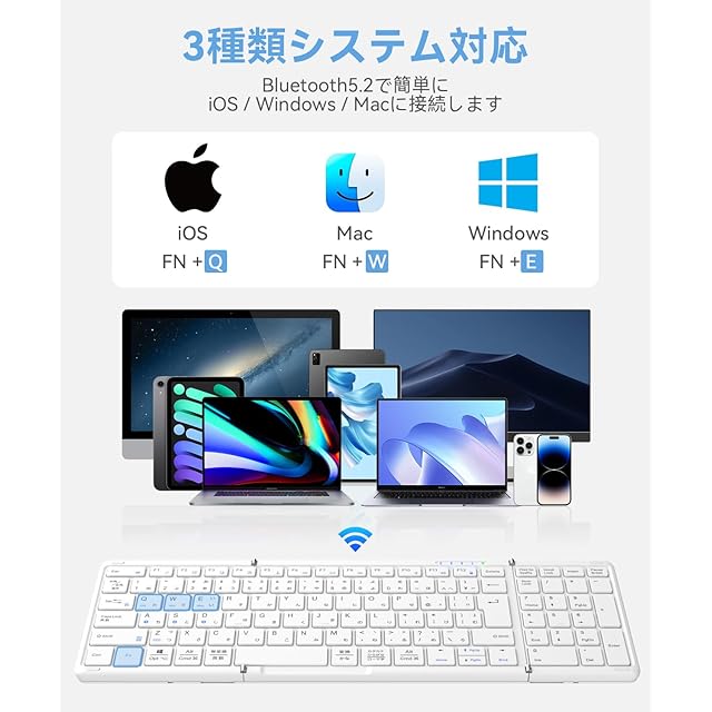 ✅【3システム対応&3台設備まで切替使用】折り畳み ブルートゥース キーボードはiOS、Windows、Macなど三つシステムに適用しております。また、3台マルチペアリングに対応し、タブレット、パソコン キーボード、スマホの間、ボタンワンクリックで利用したい機器と接続可能です。