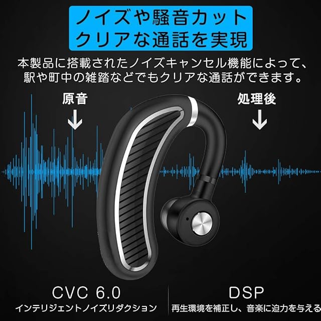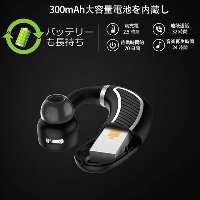 【製品特徴】本体サイズ:45×65×18(mm)。300mAh大容量電池を内蔵し、充電約2.5時間、通話約32時間、音楽再生24時間、待機約70日間、IOSシステム電池残量表示でき、通信距離約10~15メートルです(障害物無しの場合)。音声制御でき、高音質で楽しめます。