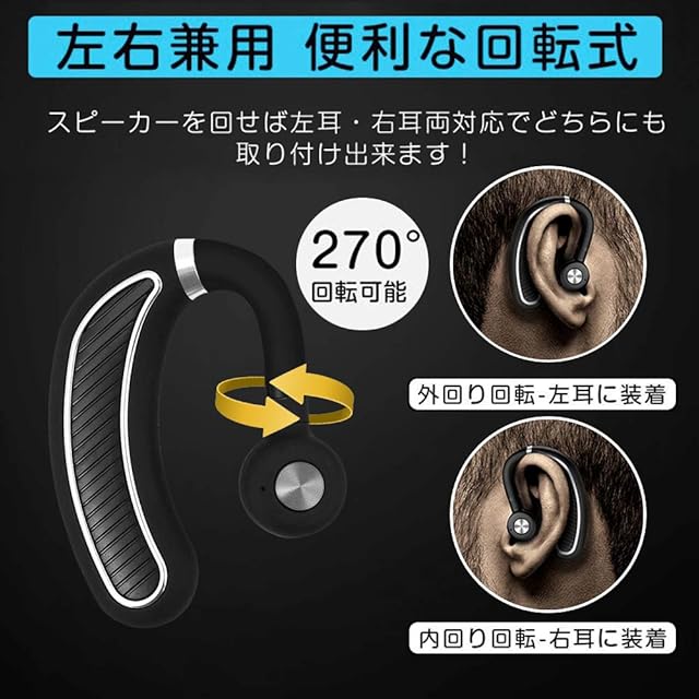 Bluetooth ヘッドセット 片耳 左右耳兼用 IPX7防水 Bluetooth イヤホン V5.0 片耳 USB充電 270°回転 耳掛け式 片耳 バッテリー 長持ちイヤホン 30時間通話可能 マイク内蔵 ブルートゥースイヤホン ビジネス スポーツ 通勤 通学 車用 IOS Iphone Android Windows PC スマートフォンに対応 ミニ 軽量
