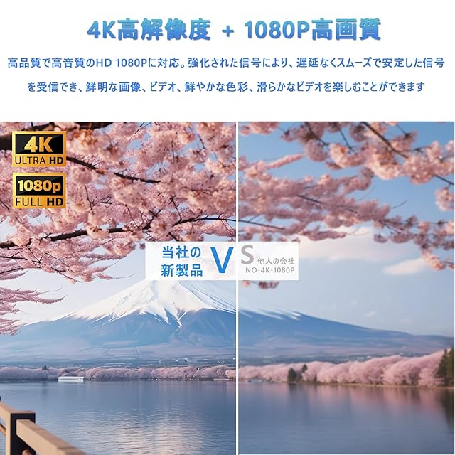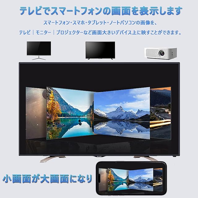 【ワイヤレスでミラーリング・大画面視聴】最新のミラーキャストは安定なワイヤレス伝送プロトコルを採用され、スマホ・タブレット・ノートパソコンの画像を、テレビ│モニター│プロジェクターなど画面大きいデバイス上に映すことができます。HD ビデオ/ゲーム/写真/オフィスファイルなどが高解像度で色鮮やかな映像でミラーリング可能で、家庭エンターテイメント/ビジネス/教育/トレーニングなどのシーンではおすすめです! 【1080P高解像度・4K高画質】最新発売のHDMI ミラーキャストは高画質、高音質のHD1080Pをサポートしています。高解像度で色鮮やかな映像をお楽しみいただけます。もっと強化された信号ケーブルは、hdmi ミラーキャストがゼロ遅延でより安定した信号を受信し、より安定した信号を受け取り、バッファまたは遮断の可能性を低減することができる。精細な画像、ビデオ、鮮やかな色彩、滑らかな映像を楽しむことができます。動画配信時に4Kのハイビジョン映像に対応できます。