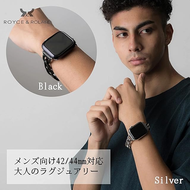 Royce&Roland Apple watch チェーンバンド おしゃれ アップルウォッチ 時計 バンド (ステンレス/シルバー) レディース メンズ ギフト プレゼント (40mm 41mm 42mm, ブラック) | TREND DESIGN 家電専門店