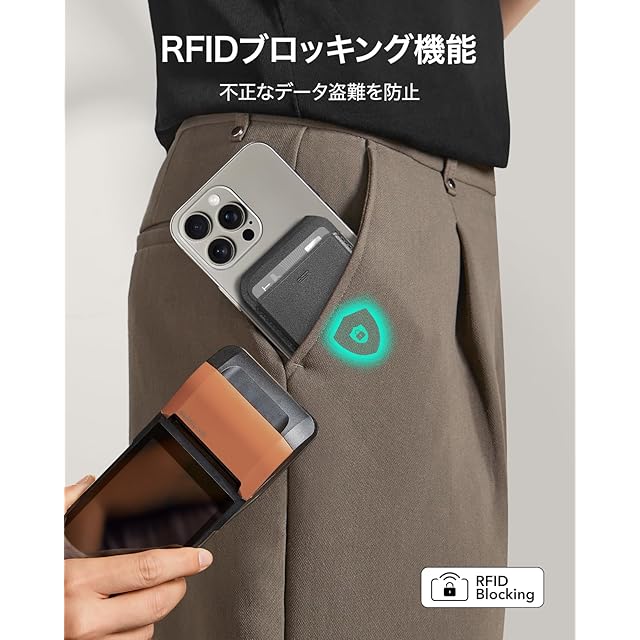 【強力なセキュリティ保護】:RFIDブロッキング機能と磁気防止カードケースが内蔵されており、カードが不正なスキャンや磁気障害から保護され、ショッピングや旅行などのアクティビティ中に個人情報を安全に保つことができます