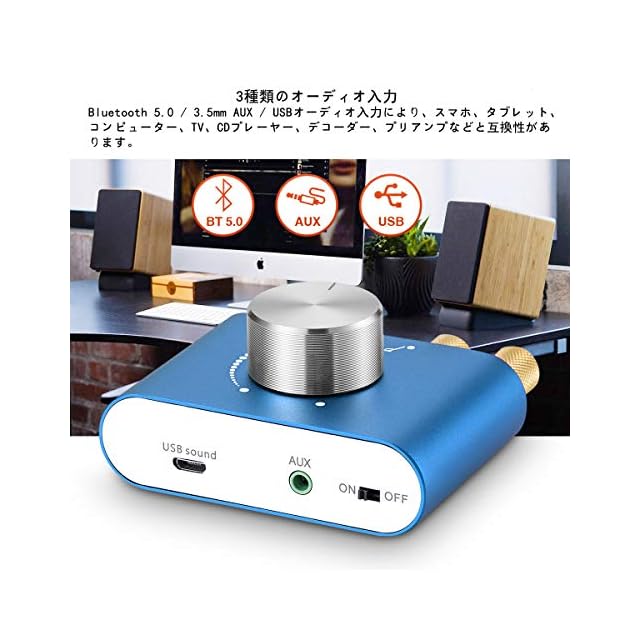 Bluetoothレシーバーとパワーアンプ(Headphone Amplifier)の2-In-1アンプです。スマホなど無線でスピーカに繋がります。