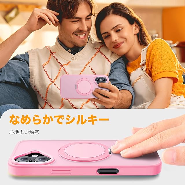 商品名:【多機能360度回転スタンド】Mcoifull iPhone 16 ケース マグネット搭載 ワイヤレス充電 耐衝撃 マット感 半透明 指紋防止 アジャスタブルスタンド アイフォン16 ケース ピンク