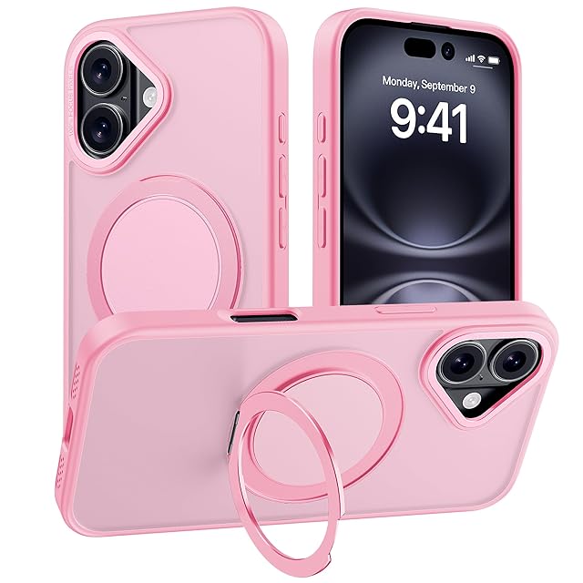 【多機能360度回転スタンド】Mcoifull iPhone 16 ケース マグネット搭載 ワイヤレス充電 耐衝撃 マット感 半透明 指紋防止 アジャスタブルスタンド アイフォン16 ケース ピンク | TREND DESIGN 家電専門店