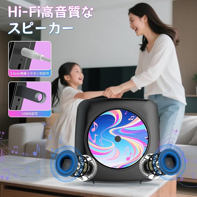 【FMラジオ&USB給電式:】FMラジオ機能(受信周波数:76~108MHz)は日本のFMラジオ周波数76~90MHzにも対応済なので、実用的な防災ラジオとしても使えます。また、USB給電式なので、付属するUSBケーブルで、5V/2AのUSBアダプターに接続して使用できます。リビングルームや寝室、パーティーなどの場合にも自由に音楽を楽しめます。ご注意:必ず5V/2AのUSBアダプターをご使用ください。5V/1A充電器を使用すると、ディスクの詰まりや読み込み不良が発生する場合があります。