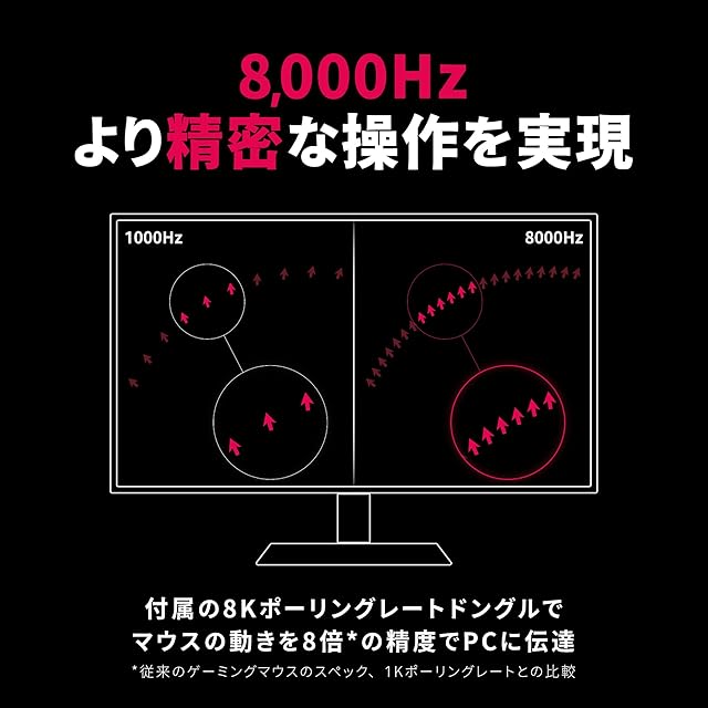 ✅【8000Hzのより精密な操作感】8Kポーリングレートドングル採用でより高い精度でPCへ伝達