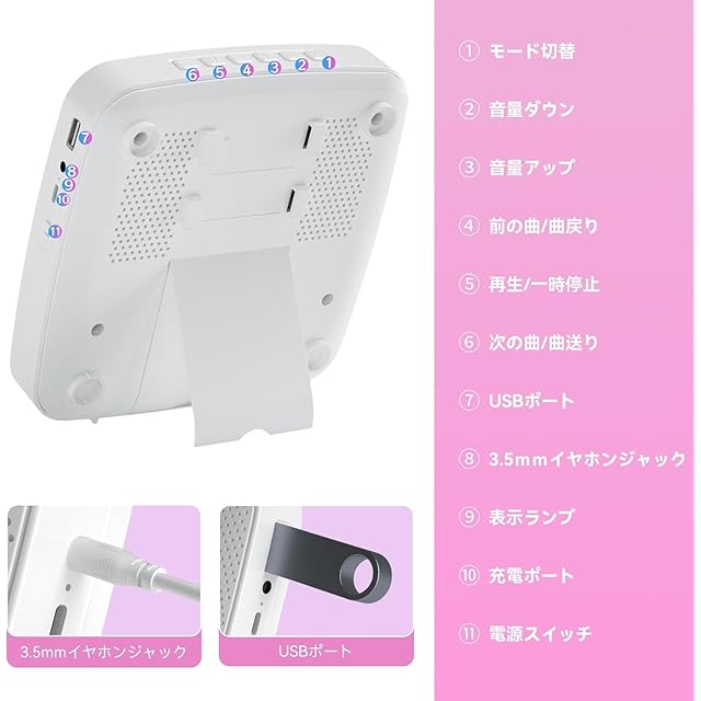 【4つ再生モード&様々な場所に適用】全曲リピート/1曲リピート/ランダム再生/順番再生の4つのプレイ・モードに加え、本CDプレーヤーは、子供や語学学習者の言語学習に最適なA-Bリピート機能も備えています。更に、付属のUSBケーブルでコンピューター、USBアダプター、ポータブルバッテリーに簡単に接続して給電でき、お部屋、キャンプ・パーティー、子供向け教育や胎児教育、贈り物、喫茶店など多くなシーンに適用されます。