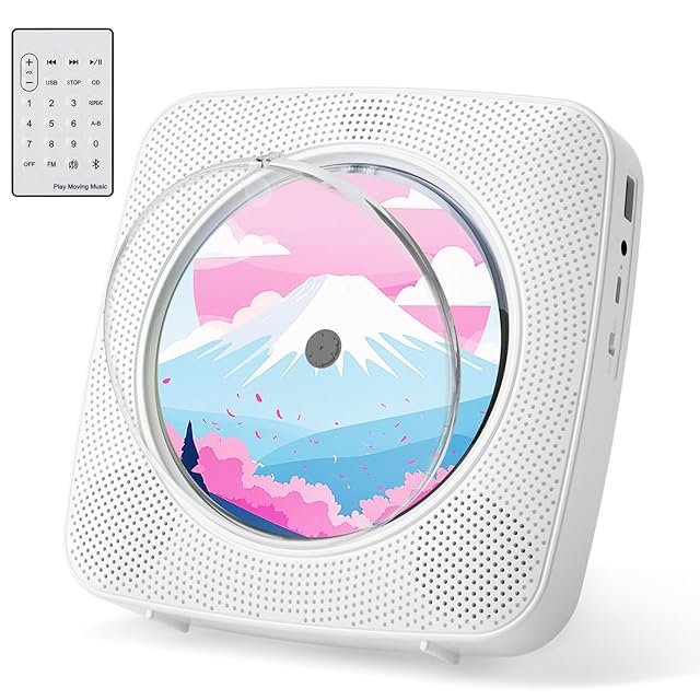 Gueray CDプレーヤー 卓上&壁掛け式 Bluetooth受信/送信 HiFiスピーカー内蔵 cdプレイヤー 多機能 FM/USBなどに対応 操作簡単 リピート/A-Bリピート再生 mp3対応 イヤホン対応 防塵カバー付き CDラジカセ リモコン 音楽再生/語学学習/胎児教育 日本語説明書付き ホワイト