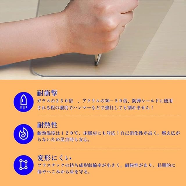 の新しいアップグレードされた環境保護材料pvc透明冷蔵庫 マット.<br><br>冷蔵庫 マット キズ防止 凹み防止 床保護シート 無色 透明 縮まない . <br><br>冷蔵庫キズへこみ防止マット 冷蔵庫を置く際に床やフローリングから傷や凹みから守ります!耐荷重は約300kgと、ほとんどの冷蔵庫に対応し、従来の製品より厚さ・耐久力がアップしています。また、本体は軽く女性でも楽々持ち運び可能!<br><br>床暖房に対応耐熱温度はなんと120℃!もちろん床暖房にも対応し、変形や変色などの心配がありません。電気を通しづらく自己消化性が高いため、火をつけても燃え広がりません.<br><br>耐震性・耐久性に優れたマット従来品(1.5mm)より厚みのある2mmの素材にアップデート!長期使用に最適な、変形しにくい 冷蔵庫マットで床の使用汚れも防ぎ、柔らかいクッションフロアなどでもお使いいただけます.耐久性に優れ、地震などの災害時でも破損・飛散しません