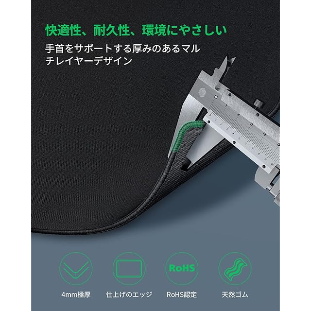 [拡張大型サイズ]900 x 400 x 4 mm / 35.4 x 15.75 インチ x 0.15 インチのこのマウスパッドは、フルサイズのキーボードとマウスの領域をカバーし、プロのゲームやオフィスでの作業に十分なスペースを提供します。
