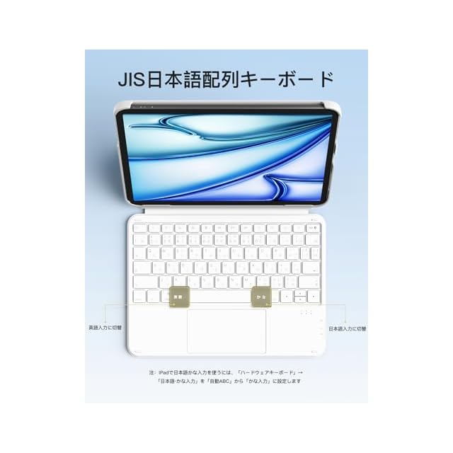 商品名:Inateck iPad Air 6 (M2) 11インチ 2024/M3 2025 キーボード付きケース JIS日本語配列 iPad A16 第11世代/第10世代用軽量キーボード Pro11インチ第1/2/3/4世代 Air第4/5世代 10.9インチに対応 横/縦置き 着脱式 タッチパッド搭載 KB04122 白