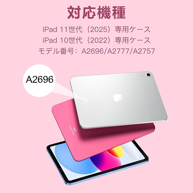 【対応機種】対応iPad 11/10世代 専用 ケースです。対応iPad (A16) 2025発売 A3354/A3355/A3356,対応iPad (10世代) 2022発売 A2696/A2757/A2777。ご注意:ご購入する時に手元のデバイスの裏面に記載しているモデル番号をご確認ください)