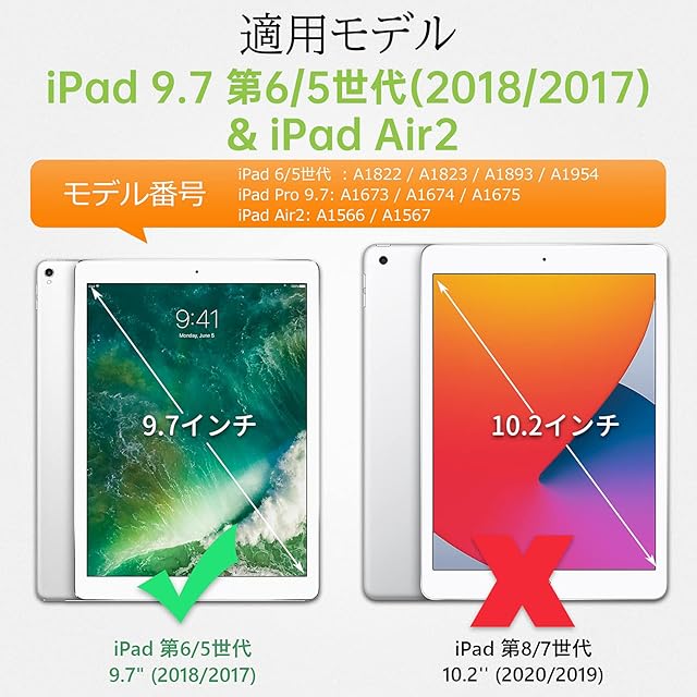 ★【対応機種】:本品はiPad 第6/5世代、iPad Air2、iPad Pro 9.7専用デザインです。型番:A1822 / A1823 / A1893 / A1954(iPad 6/5世代)、A1566 / A1567(iPad Air2)、A1673 / A1674 / A1675(iPad Pro 9.7)のみに適用されるため、ご購入前に必ずご確認ください。