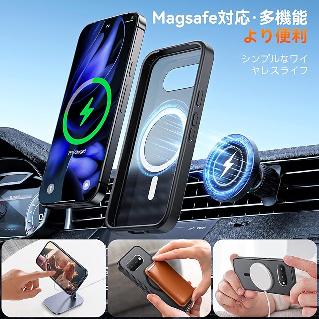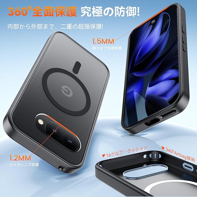 Google Pixel 9a 用 ケース MagSafe対応 ワイヤレス充電 磁気ケース 耐衝撃性 米軍MIL規格の保護 傷に強い背面