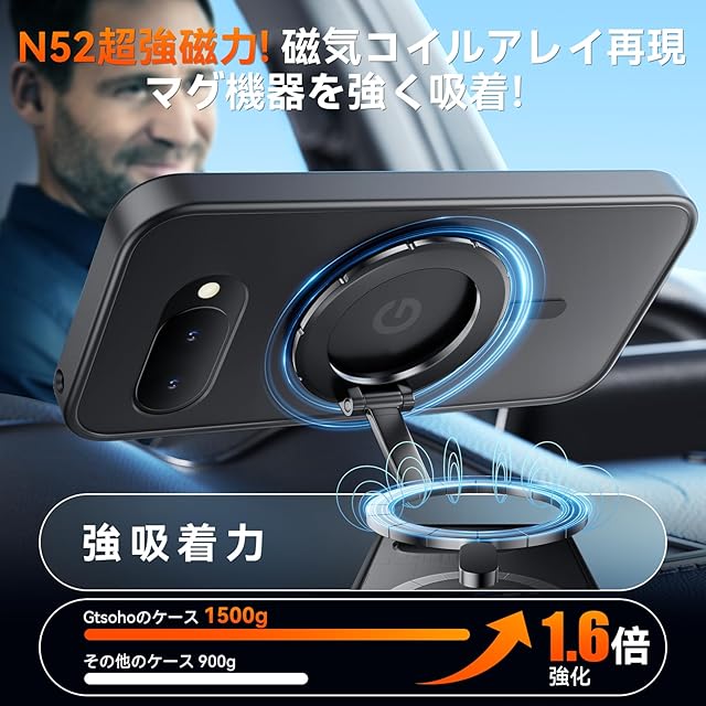 【強力な磁力吸着!】Google Pixel 9a 用 ケース内部は38個強力なN52マグネットを搭載、超吸着能力でいくら振っても落ちない。また、マグセーフ世代に増える、Magsafe対応スタンド&リングなど大活躍で、リラックスした生活に重宝します。