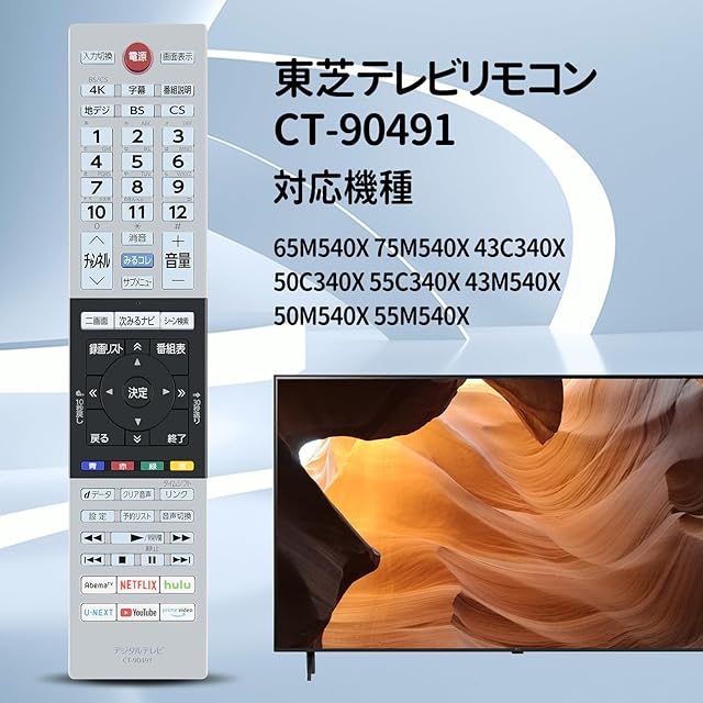テレビリモコン CT-90491 for TOSHIBA 東芝 レグザ リモコン 東芝テレビリモコン regza リモコン 43C340X 50C340X 55C340X 43M540X 50M540X 55M540X 65M540X 75M540X 43M540XR 50M540XR 55M540XR 65M540XR 75M540XR対応(音声機能なし) | TREND DESIGN 家電専門店