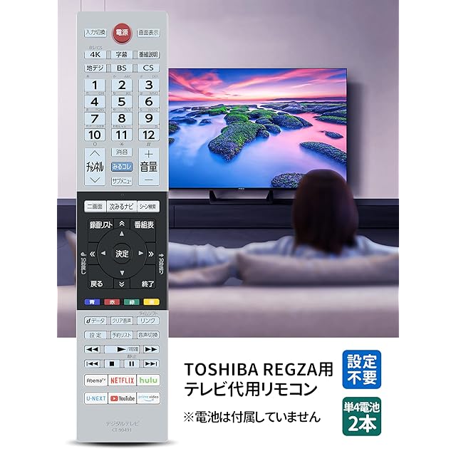 【簡易リモコン】東芝テレビリモコン CT-90491の交換用リモコン、オリジナルリモコンのほとんどの機能を適用.このリモコンには音声機能はないので、ご購入前にご注意ください。