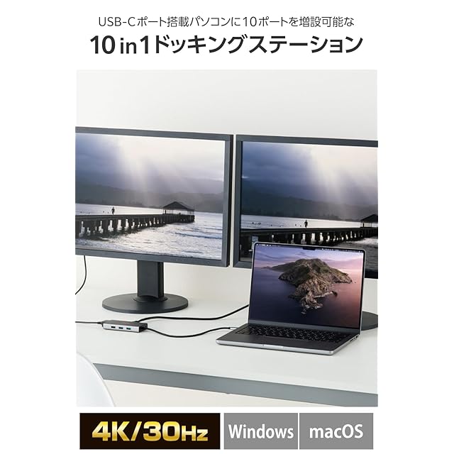 商品名:エレコム USB-C ハブ ドッキングステーション 10in1 3画面同時出力(2画面拡張)デュアルディスプレイ対応 HDMI 4K/30Hz VGA USB PD対応 グレー DST-W15