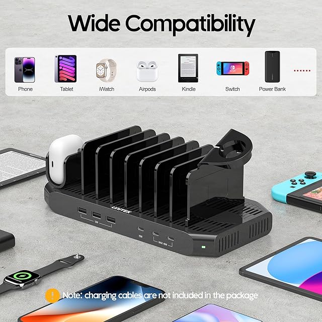 【バッケージ内容】Unitek USB 6ポート充電ステーション(PD 20W*2+USB-C)x1、高い板x11、アップルウォッチ収納スタンドx1、airpods収納スタンドx1、60W電源アダプターx1、24ヶ月の品質x1※ご買い上げる日より、24ヶ月の品質をご提供いたします。期間、通常のご使用で万が一製品品質上の問題にご満足いただけない場合は、ぜひご連絡下さいませ。