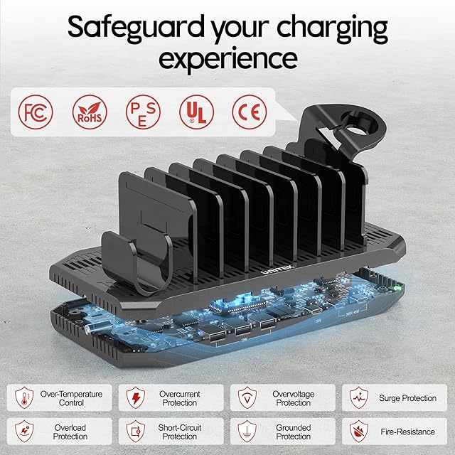 【お好みにより間隔調整可】仕切り板を2.33mm単位で好きな幅で自由に調整できます。差し込みもとても簡単で保護カバーを取らずにスマホなどを置いたまま充電ケーブルを接続できます。Unitek USB充電ステーションで乱雑していた机の上をスッキリとした空間を作り出すことができます。ご注意:充電ケーブルは別売りです。