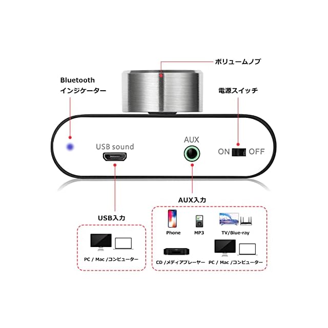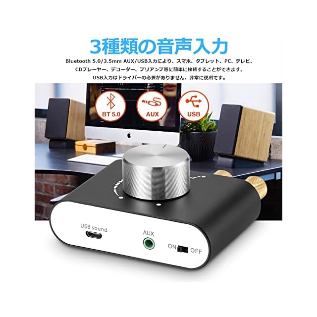 Bluetooth 5.0/3.5mm AUX/USB入力により、スマホ、タブレット、PC、テレビ、CDプレーヤー、デコーダー、プリアンプ等に簡単に接続することができます。 USB入力はドライバーの必要がありません、非常に便利です。