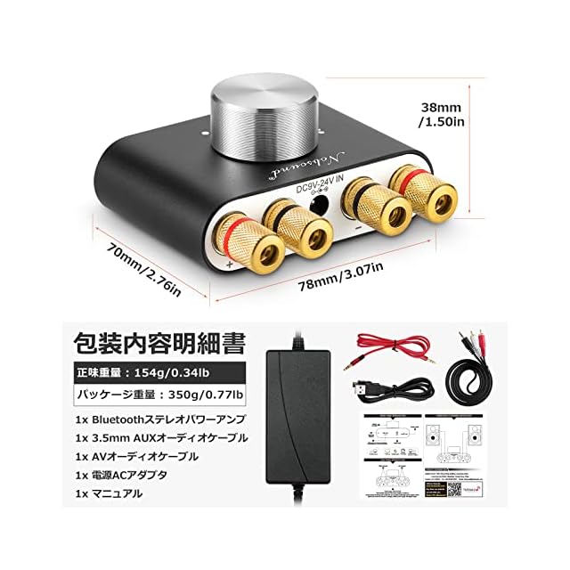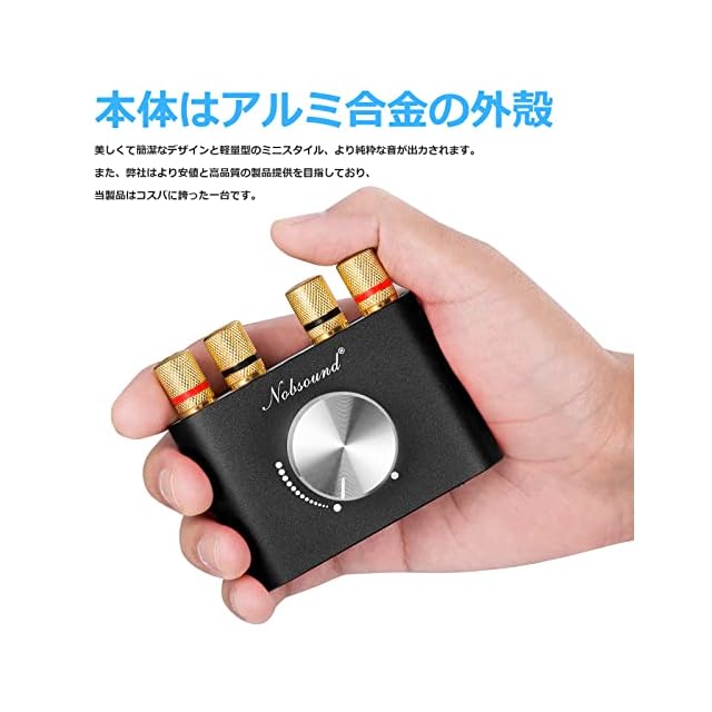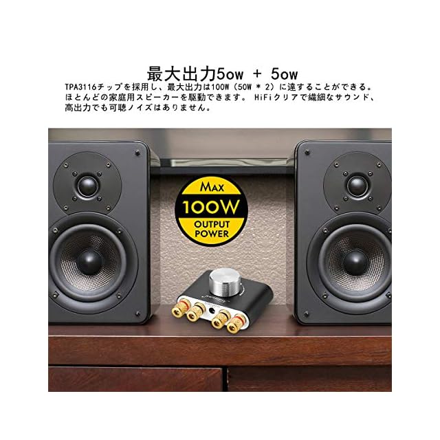 Nousoundの特製チップを採用され、最大パワーは100W(50*50W)になり、 ほとんどの家庭用スピーカーを簡単に駆動ですます。HIFIのクリアで繊細のサウンドで、大音量でもノイズがほぼありません。