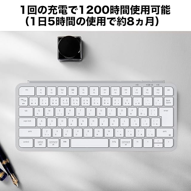 【1回の充電で1200時間使用可能】 最大1200時間のバッテリー寿命で、途切れることなく使用できます。また、凹型のコンケーブキーキャップは正確な入力をし、指に自然にフィットする快適なタイピングを実現します。