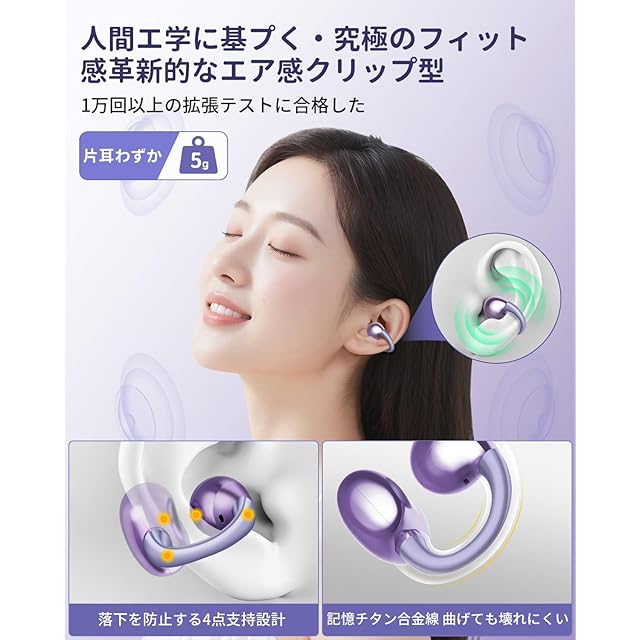 商品名:2025新潮流 イヤーカフ イヤホン Hi-Fi音質 音漏れ防止 Bluetooth5.4 オープンイヤーヘッドホン 軽量約5g IPX5防水 耳挟み式 骨伝導の革新 人間工学設計 快適装着感 iOS/Android対応 で長時間使用可能 通勤/学校/スポーツ/ゲーム/仕事