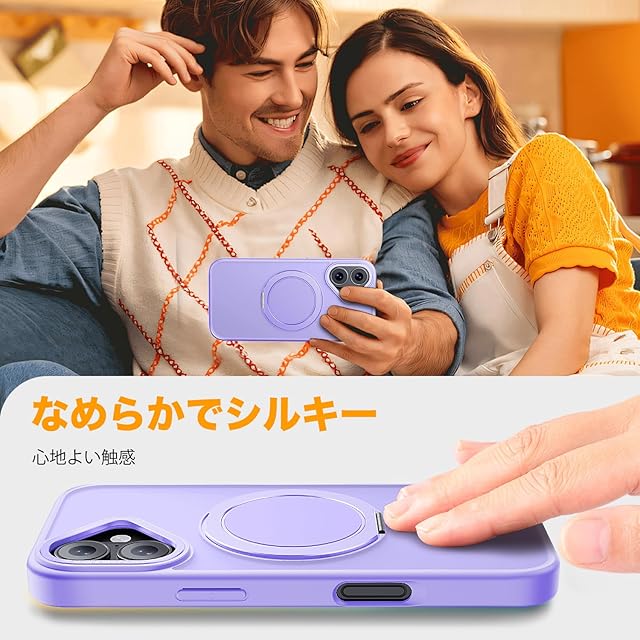 商品名:【多機能360度回転スタンド】Mcoifull iPhone 16 ケース マグネット搭載 ワイヤレス充電 耐衝撃 マット感 半透明 指紋防止 アジャスタブルスタンド アイフォン16 ケース ライトパープル