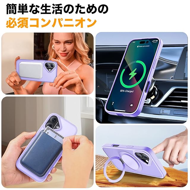 iphone 16 用 ケース MagSafe対応 スタンド付きワイヤレス充電 磁気ケース 耐衝撃性 米軍MIL規格の保護 傷に強い背面 6.1インチ