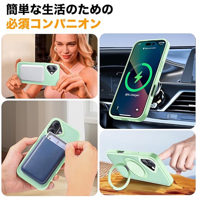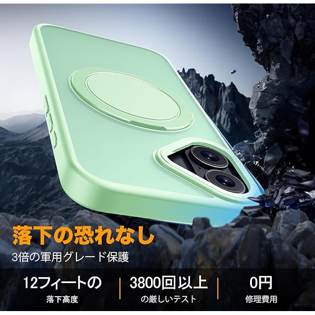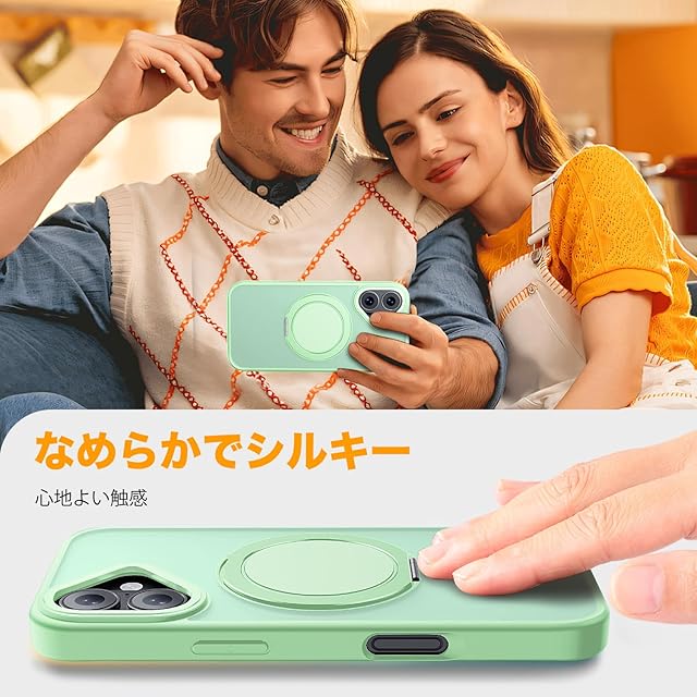 商品名:【多機能360度回転スタンド】Mcoifull iPhone 16 ケース マグネット搭載 ワイヤレス充電 耐衝撃 マット感 半透明 指紋防止 アジャスタブルスタンド アイフォン16 ケース ライトグリーン